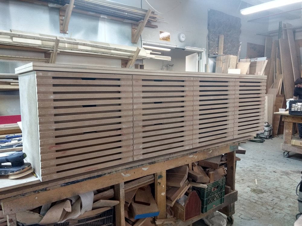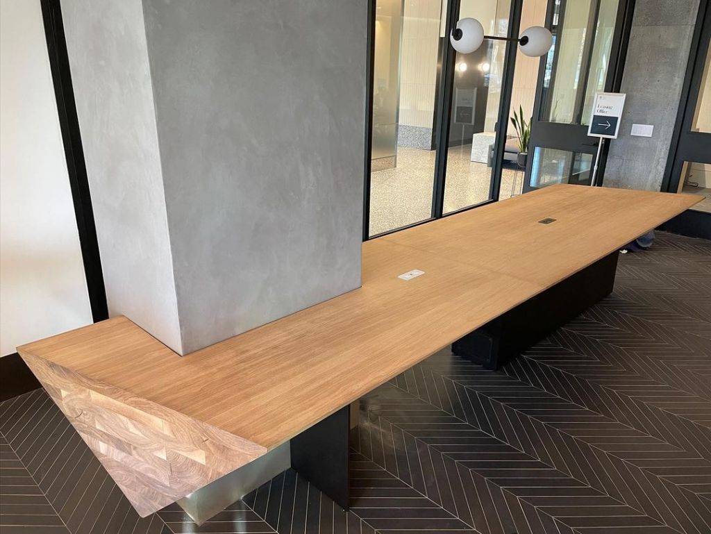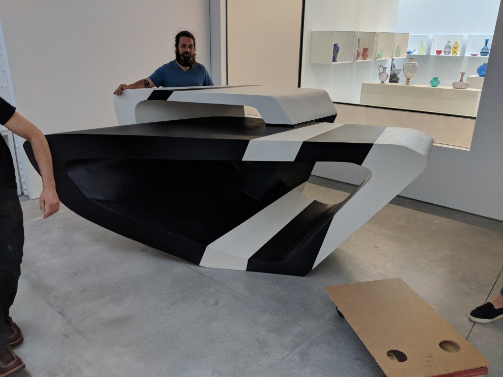 Portfolio Furniture Frye Showroom Oxidized Maple Coffee Table Walnut Veneer Meeting table Smoked Ash Dining Table & Bench White Lacquer Media Console Sapele Coffee Table Zaha Hadid Gallery Table Cherry Dining Table Cherry Slab Benches Assorted Furniture, Walnut Experiences & Installations Cafeteria Wall Panels, MoMA The Polynesian – Tables, Dividers, Bar Face The Color Factory “Complimentary Colors” Orchid Show 2019, NYBG Dior Blue Pop-up Burle Marx Concrete Wall, NYBG